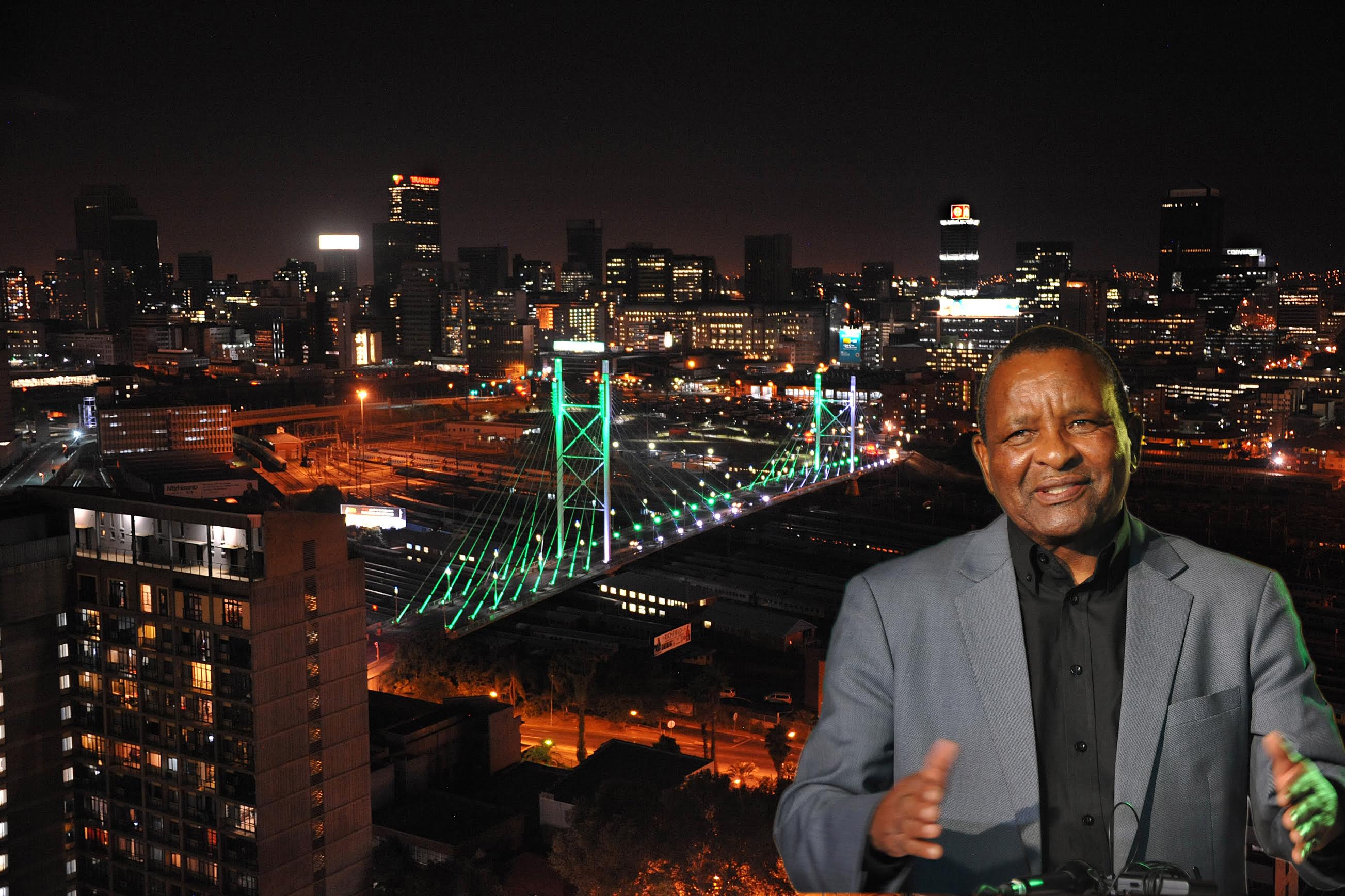 JOHANNESBURG, SOUTH AFRICA. 27 April 2016. 1q00 Days to go to the Opening Ceremony of the Rio 2016 Olympic Games. The Nelson Mandela Bridge connecting the Johannesburg CBD with Braamfontein was lit up in the green and yellow colours of Brazil. City of Johannesburg Executive Mayor Parks Tau, Brazil Acting Ambassador, Antonia Augusto Martins Cesar and SA Sports Confederation and Olympic Committee (Sascoc) president Gideon Sam were in attendance.Copyright picture by: WESSEL OOSTHUIZEN / SASPARESTRICTIONS:These pictures may not be archived, sold or shared with third parties. This image has been sent by email to the intended recipient and as such may not be shared with a third party without the express written authorisation from Wessel Oosthuizen